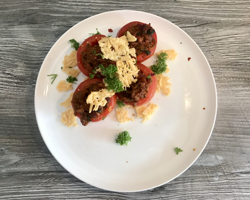 Tomaat, gehakt, kaas, voor mij echt de smaken van comford food! Dit recept voor gevulde tomaten met gehakt, rozijnen en kaascrunch is dan ook echt altijd goed. Lekker troostvoer op een off-day of juist heerlijk bij een wijntje in de zon.
